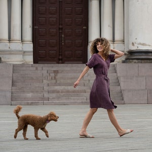 Summer Wrap Dress Linen Dress for Women Sun Cocktail Dress for Wedding Guest ELIANA Shadow Purple